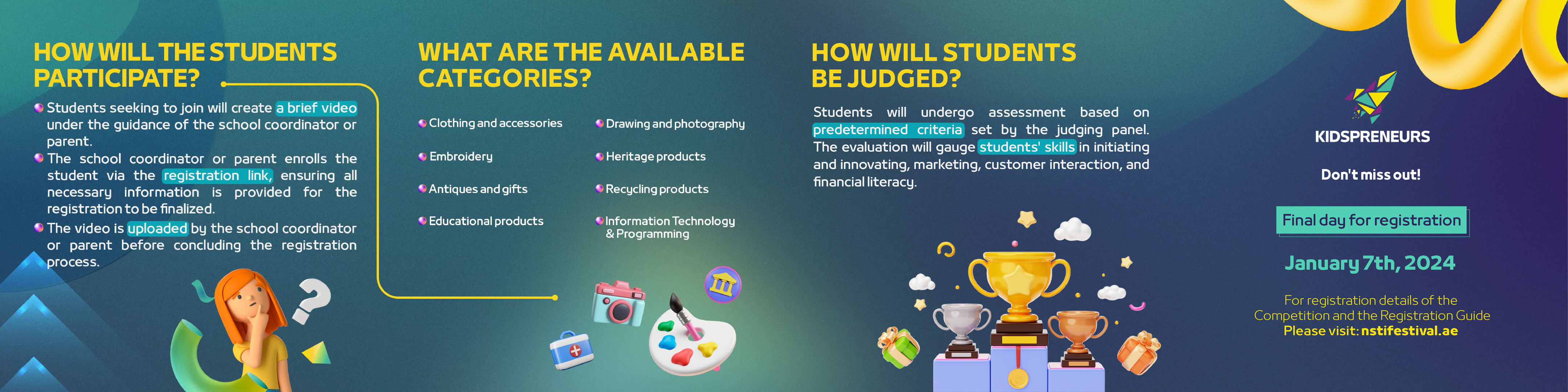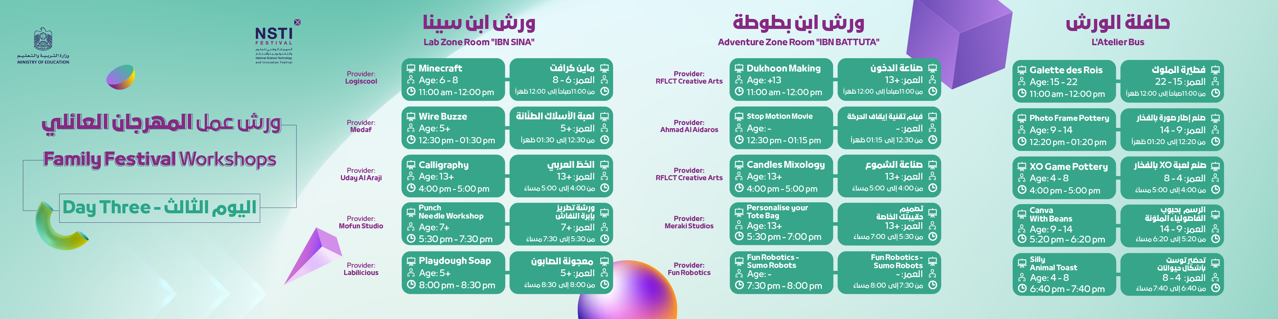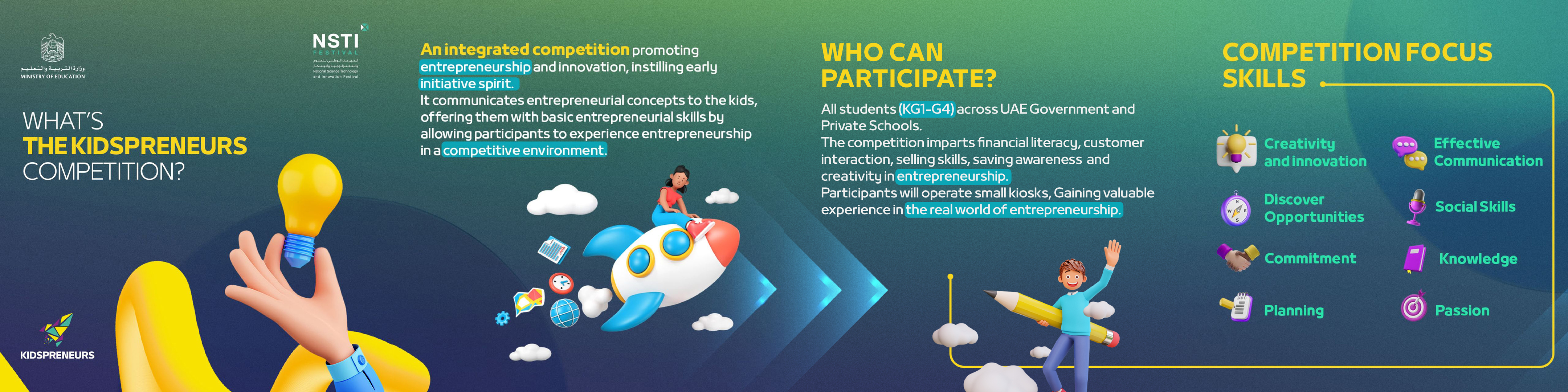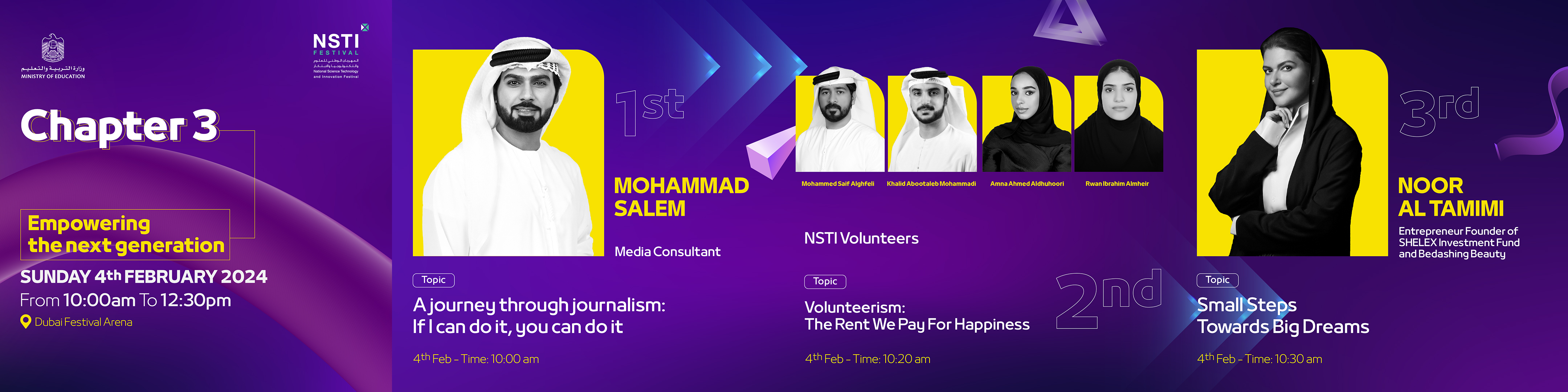 The NSTI Festival, also known as the National Science, Technology and Innovation Festival, is the largest educational event of its kind in the United Arab Emirates. It fosters creativity and innovation in science, technology, and entrepreneurship for students of all ages. The festival provides a platform for students to showcase their inventions, compete in science competitions, and learn from leading experts.