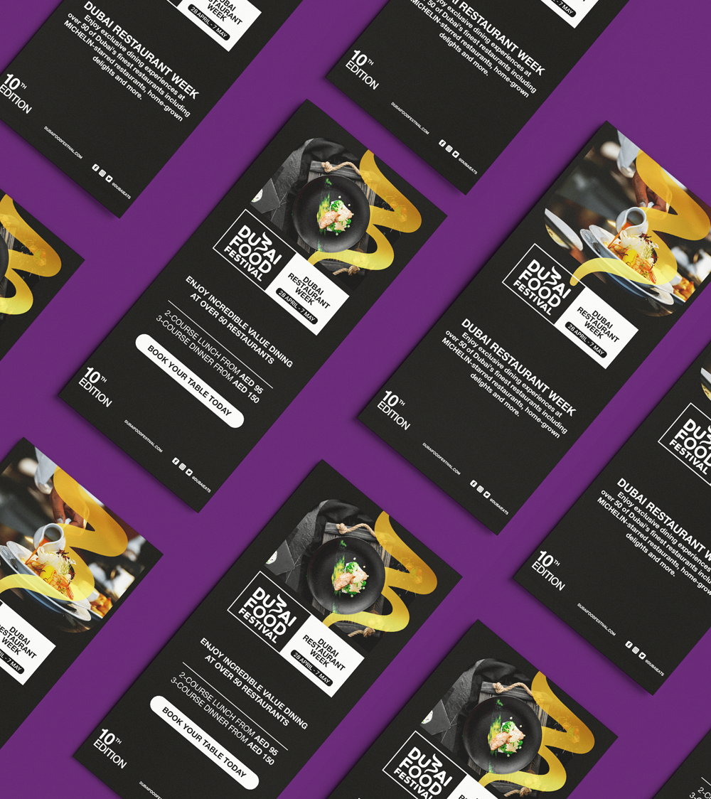 - • Enticing Color Synergy: A vibrant primary palette of bold purple and turquoise evoked culinary diversity, inclusivity, and energetic ambiance. Black and gold accents for premier events exuded sophistication and exclusivity.